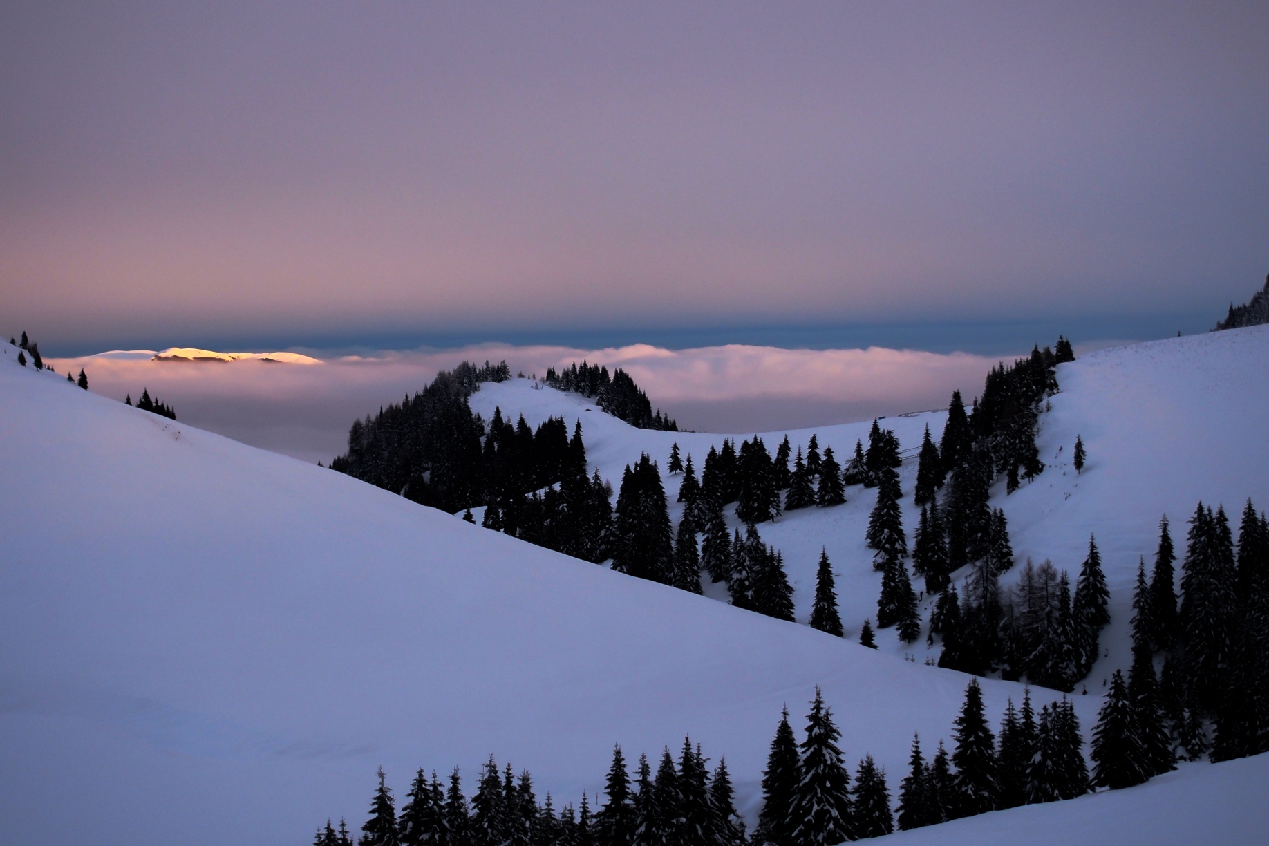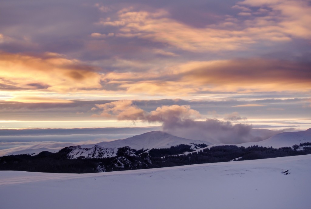 Lumina a trecut ușurel prin toate nuanțele de violet și cu asta a încheiat spectacolul de final de zi – a urmat coborârea spre Dichiu la lumina frontalei 🙂