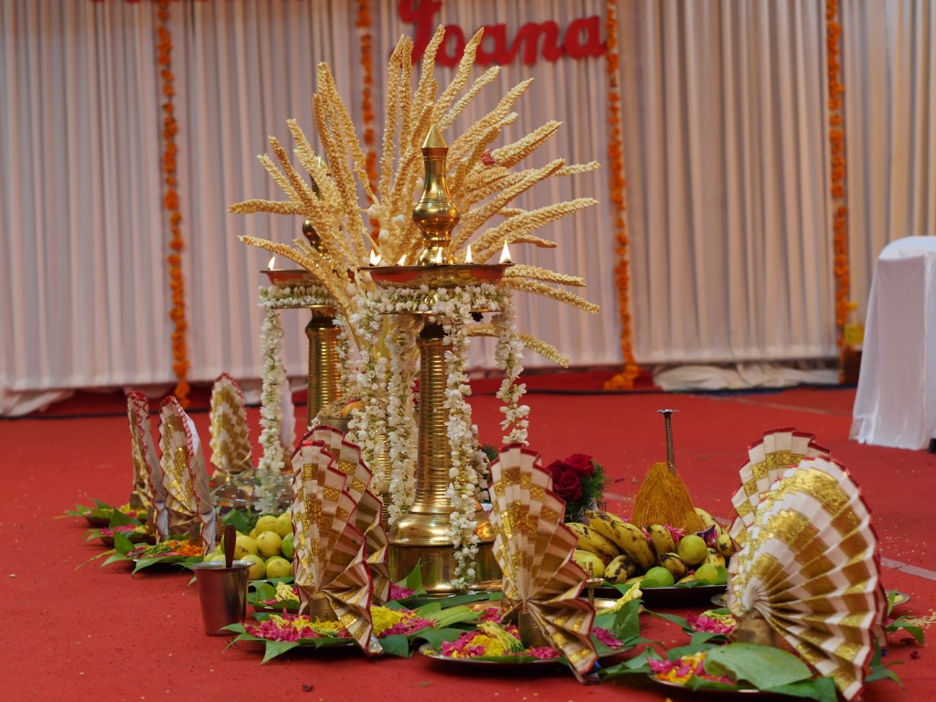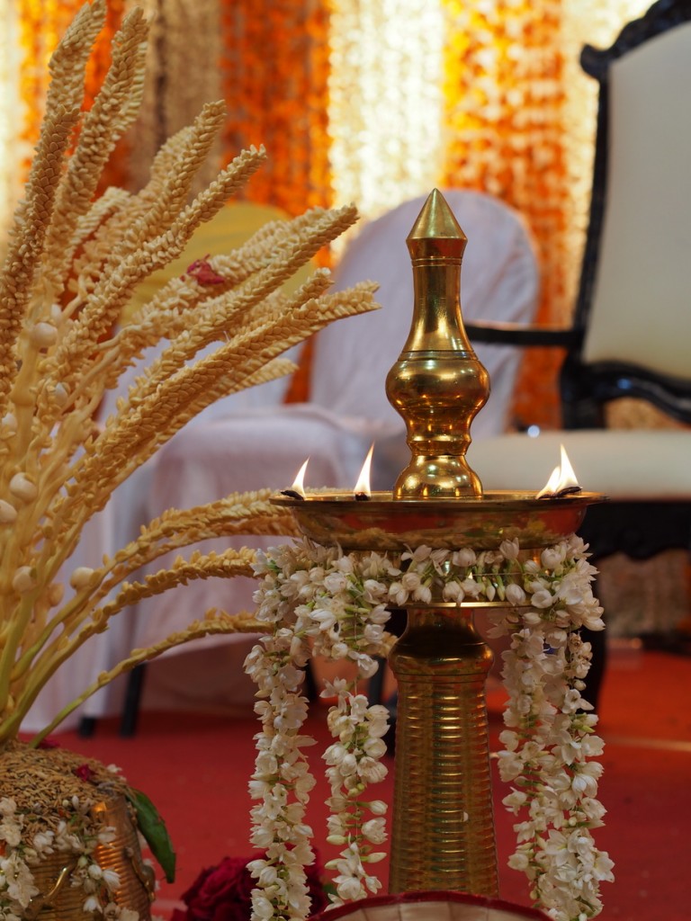 Nilavilakku – o lampă înaltă de alamă, care are în partea superioară o cupă cu ulei și fitile care se aprind. Ele reprezintă agni, zeul focului, care aduce noroc și fericire familiei.